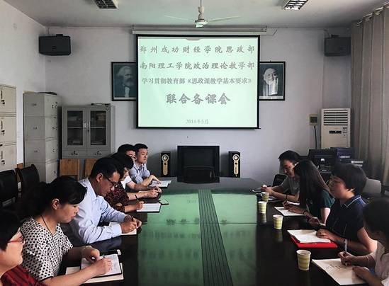 开展联合备课,是我校政教部为提升教师素质和教学技能,提高思政课教学质量和效果而开展的一项教学基本建设。此前已与南阳师范学院、南阳医专等高校开展多次联合备课。