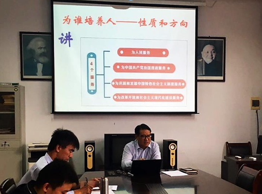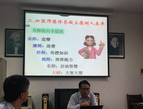 随后,葛晨光从“看、讲、忆、思、悟、行”六个环节,阐述了高校教师师德内内涵、意义,并重点就思政课教师如何加强师德修养,提升自身素质做了讲解和强调。