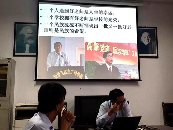 最后,葛晨光还满怀深情地向大家讲述其大学辅导员张豪锋的先进事迹和高尚品行,要求大家模范遵守高校教师师德规范,向先进模范教师看齐,爱国守法、敬业爱生、教书育人、严谨治学、服务社会、为人师表,要以德立身、以德立学、以德施教,努力成为先进思想文化的传播者、党执政的坚定支持者,更好担起学生健康成长指导者和引路人的责任。