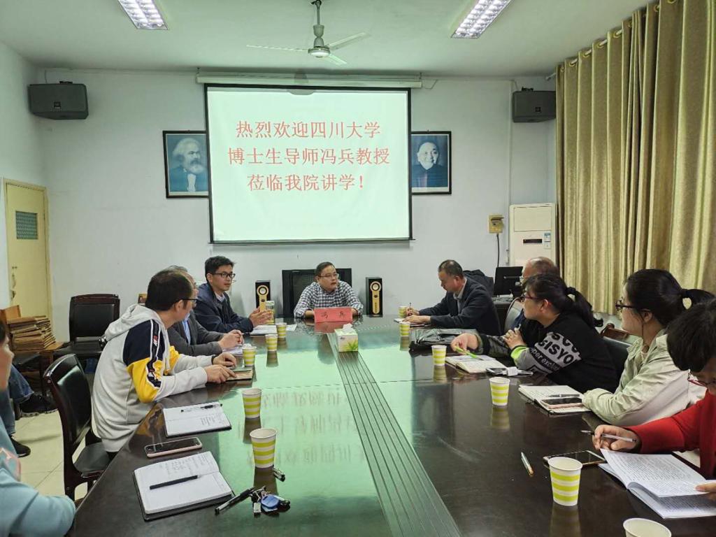 10月21日,应马克思主义学院邀请,四川大学博士生导师冯兵教授在马克思主义学院会议室与马院全体教师开展学术交流。交流活动由学院党总支书记彭民工主持。