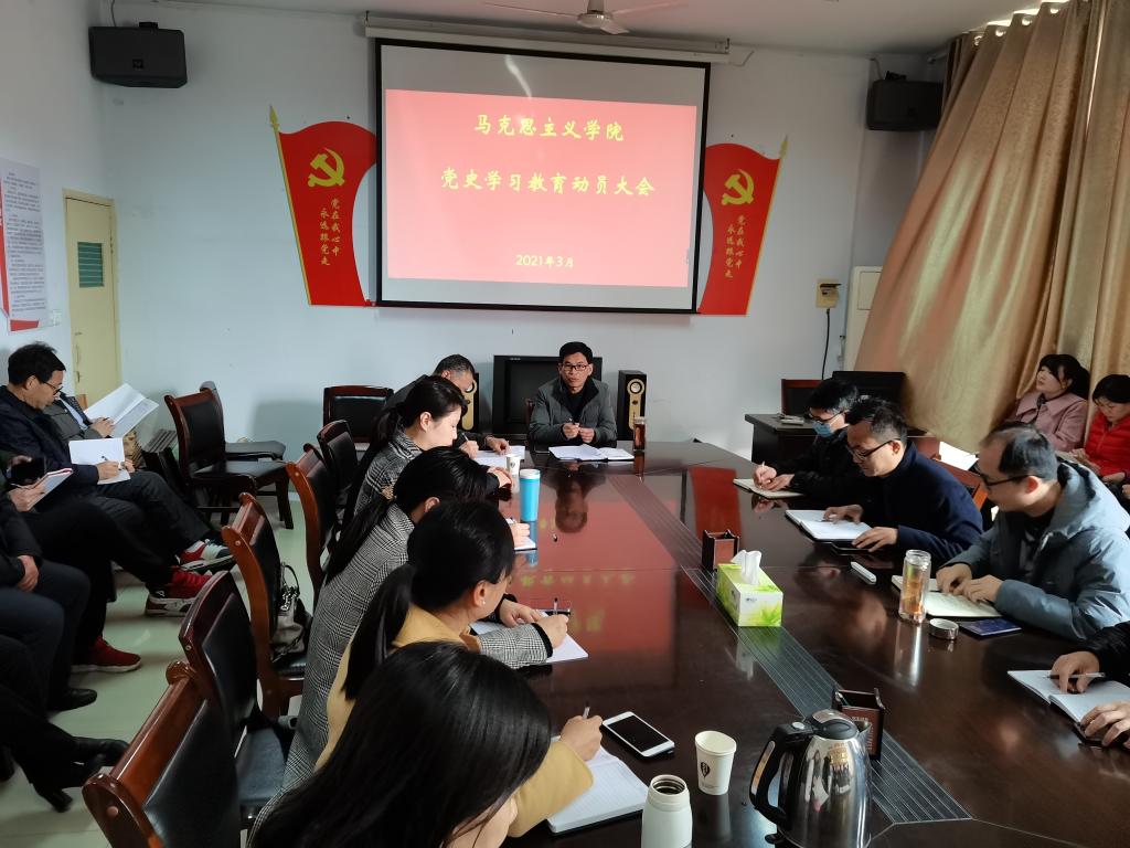 3月23日下午,马克思主义学院召开党史学习教育动员大会。学院全体教职工参加了会议。会议由马院党总支书记彭民工主持。