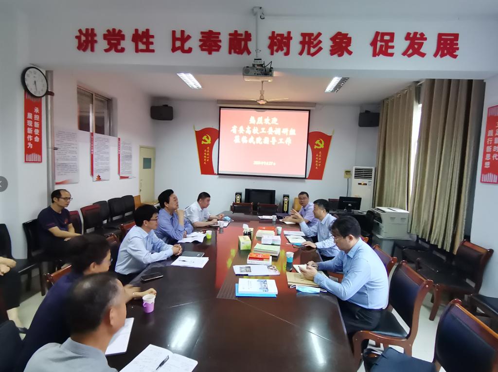 调研组着重就党的建设和思想政治工作以及《中国共产党普通高等学校基层组织工作条例》《中共中央办公厅国务院办公厅关于深化新时代学校思想政治理论课改革创新的若干意见》《中共中央办公厅关于加强新时代马克思主义学院建设的意见》等文件的学习贯彻落实情况进行调研。在查阅相关资料后,调研组针对思政课教师配备情况,思政课教师岗位津贴落实情况以及教师职称评审等情况进行深入座谈交流。最后,调研组对马院党建和思想政治教育工作予以了充分肯定。
