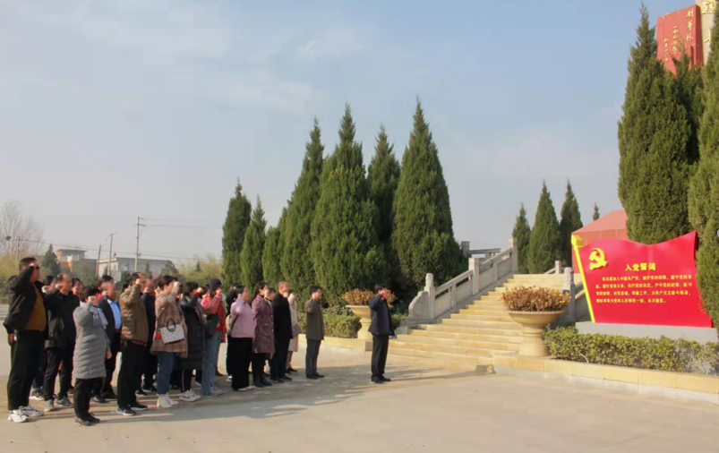 在红二十军独树镇战斗遗址纪念碑下,全体党员干部面向党旗,由党委副书记张伟领誓,重温入党誓词,铿锵有力地表达出内心的坚定信念。
