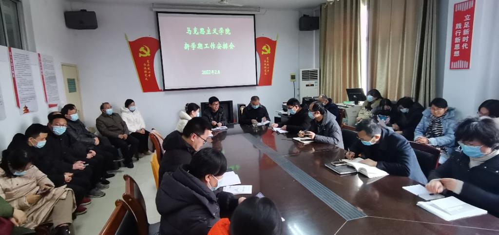2月18日下午,马克思主义学院召开2022年春期开学工作安排会,部署学院新学期重点工作。学院全体教职工参会,会议由党总支书记彭民工主持。