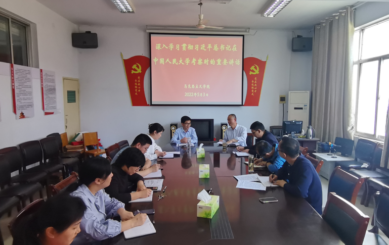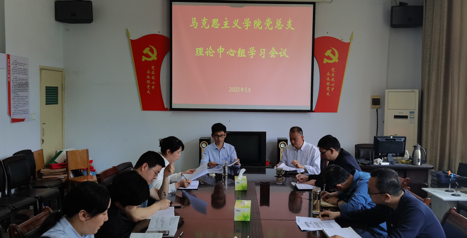 本网讯 (特约记者/赵政)5月3日下午,马克思主义学院召开党总支中心组理论学习会议,传达学习习近平总书记在中国人民大学考察时重要讲话精神。学院党总支成员、各教研室主任参加会议,学院党总支书记彭民工主持会议。