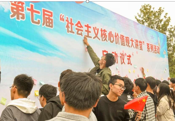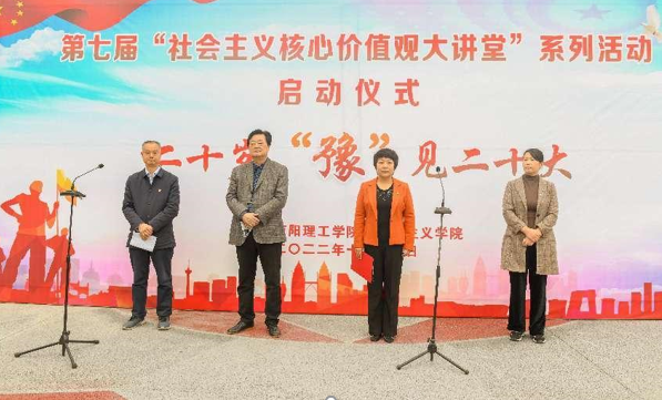 本网讯(特约记者/王亚迪) 为迎接党的二十大胜利召开,积极营造浓厚的学习氛围,切实发挥思想政治理论课实践教学铸魂育人和价值引领的重要作用,2022年10月14日上午9时许,南阳理工学院“二十岁‘豫’见二十大”主题活动暨第七届“社会主义核心价值观大讲堂”系列活动在法治文化广场举行启动仪式。校党委副书记秦鹏鸣,校党委委员、宣传部部长高芳放应邀出席。马克思主义学院领导班子成员、部分教师代表和2022级近百名新生代表参加活动,马克思主义学院院长姜金林教授主持活动。