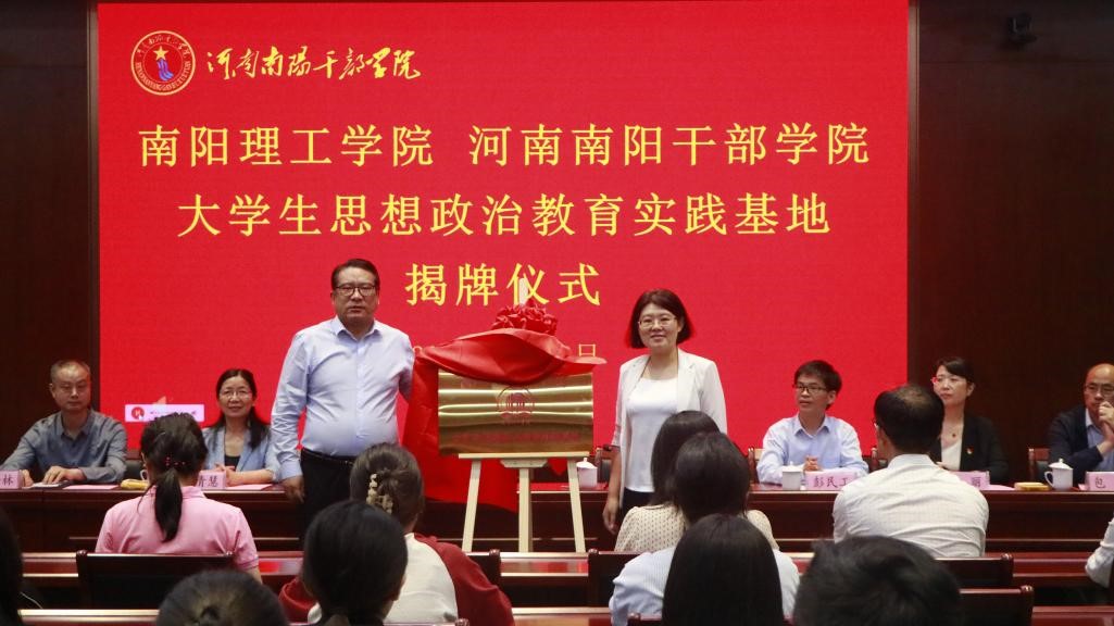 王楷楠在致辞中表示,南阳干部学院与南阳理工学院有着良好的交流合作基础,此次实践基地挂牌将进一步拓宽双方合作的广度、深度,必将加快双方在教育教学、理论研究和师资队伍建设方面的深度融合,提升办学实力和社会影响力。她希望,双方携手并肩把南水北调精神学习好宣讲好,同心协力把思想政治教育教学实践基地办出水平、办出质量、办出品牌。