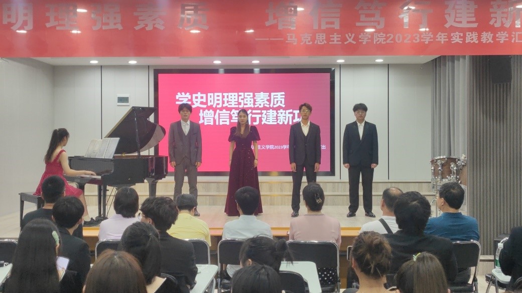 思政课实践教学汇演是马克思主义学院 “一课一品”的重要内容,通过实践教学汇演,让学生把理论学习和实践体悟结合起来,深入了解中国共产党百年风雨兼程,百年峥嵘岁月,进一步激发大家在实践中学真知、悟真谛,实现青春梦想与党和国家的事业高度契合,共赴中华民族伟大复兴新征程的奋斗激情。(校对/王丽 审核/彭民工 姜金林 )