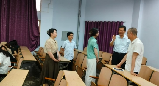 在听课环节,董豪分别认真听取了青年教师郭苏豫讲授的《中国近现代史纲要》和王珊讲授的《毛泽东思想和中国特色社会主义理论体系概论》课程。课后,董豪与任课教师进行了亲切交流,对课堂教学情况予以肯定,对改进教学方法、提高课堂教学质量等方面提出指导性的意见和建议。在马克思主义学院,董豪详细察看学院办公条件、文化建设和氛围营造情况,深入教研室看望慰问思政课教师,悉心了解教师们关注的热点问题。