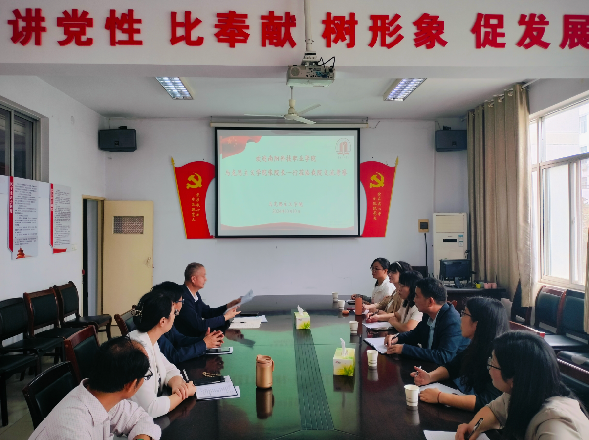 两校还对结对提升方面工作进行了探讨,标志着我校与南阳科技职业学院在马克思主义学院建设领域的合作迈出了实质性的一步,也为双方未来的合作提供了广阔的空间和可能。相信在双方的共同努力下,两校马克思主义学院的合作一定会取得更加丰硕的成果,为推动高等教育事业的繁荣发展作出更大的贡献。(校对/王丽 审核/彭民工 姜金林)