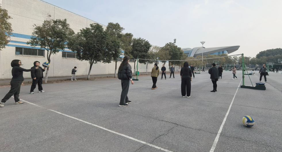 本次比赛以“健康、团结、拼搏”为宗旨,学院全体思政课教师积极参与,组成四支队伍展开激烈角逐。赛场上,教师们一改平日讲台上的儒雅形象,化身矫健的运动员,发球、扣球、拦网、救球,配合默契,斗志昂扬。场下观众加油声、欢呼声此起彼伏,现场气氛热烈。