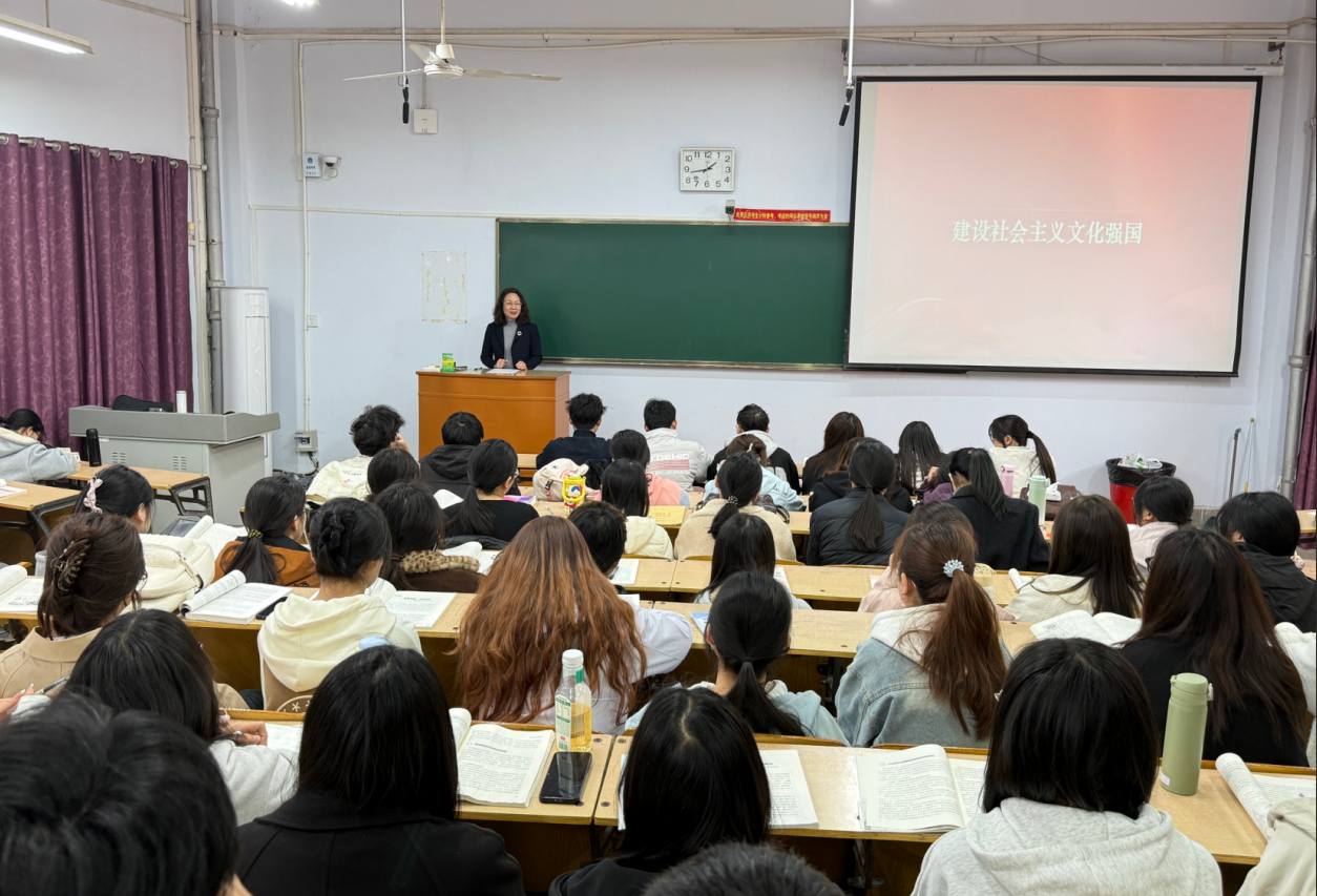 授课中,张爱红结合医学专业特色与育人使命,从南阳深厚的中医药文化底蕴展开。她指出,中医药文化是中华优秀传统文化的重要瑰宝,传承弘扬中医药文脉,既是专业使命,更是文化担当。讲授围绕文化是民族生存和发展的重要力量,坚定中国特色社会主义文化自信,坚持中国特色社会主义文化发展道路几个方面进行了深入阐释,强调要充分发挥先进文化的凝聚力与引领力,建设具有强大凝聚力和引领力的社会主义意识形态。她希望同学们熟读经典,潜心医术,以仁心仁术造福人民,在保护、传承与发展中,在建设社会主义文化强国中,展现青年学子的责任和担当,践行文化自强的时代要求。