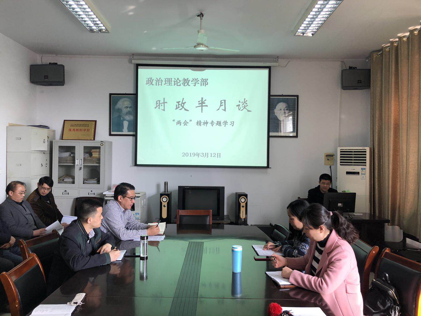 3月21日,政治理论教学部第11期“时政半月谈”在部会议室举办。形势与政策教研室主任张闻晓首先带领大家认真学习了《两会精神》。随后,大家围绕两会精神和时事政治进行热烈讨论。