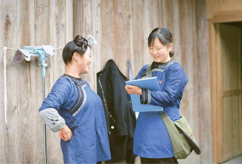 2020年11月16日,贵州省黔东南苗族侗族自治州榕江县平江镇巴鲁村网格员刘园(右)走访结对帮扶户时,与村民韦福琴核对生产生活情况。32岁的共产党员、退伍军人刘园是榕江县退役军人局的一名侗族干部,她2019年11月到巴鲁村担任网格员后,全身心投入脱贫攻坚工作。在担任网格员的一年多时间里,刘园忙着为未就业村民推荐岗位,协助搬迁户旧棚拆除,投入复垦复绿等工作,脚踏实地履行工作职责;同时,还积极主动为村民办实事、解难题,关心留守儿童和空巢老人,以热情和敬业的精神赢得了群众的信赖。2019年,刘园被贵州省评为脱贫攻坚优秀共产党员。 新华社记者 杨楹/摄