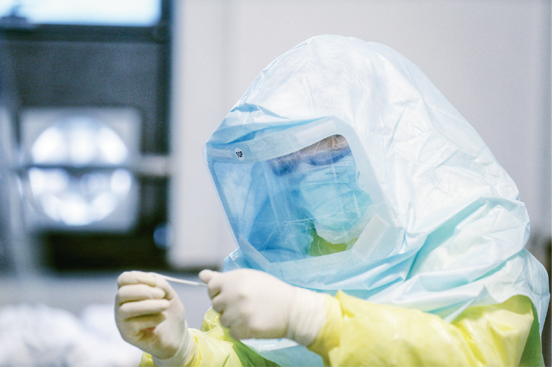 2020年1月26日,正是大年初二,北京协和医院响应国家号召,吹响驰援武汉的号角,刘正印作为第一批北京协和医院国家援鄂抗疫医疗队的队长,披甲出征。到达武汉后,医疗队先后筹建了普通病房和重症监护病房(ICU),刘正印每次都亲力亲为。作为党员,他第一批进病房,与病人零距离接触,并坚持每天进病房,用实际行动作出表率。“采标”是医生接触病毒量最高的工作。图为2月14日,刘正印在湖北武汉同济医院中法新城院区为病人“采标”。 新华社发 崔萌/摄