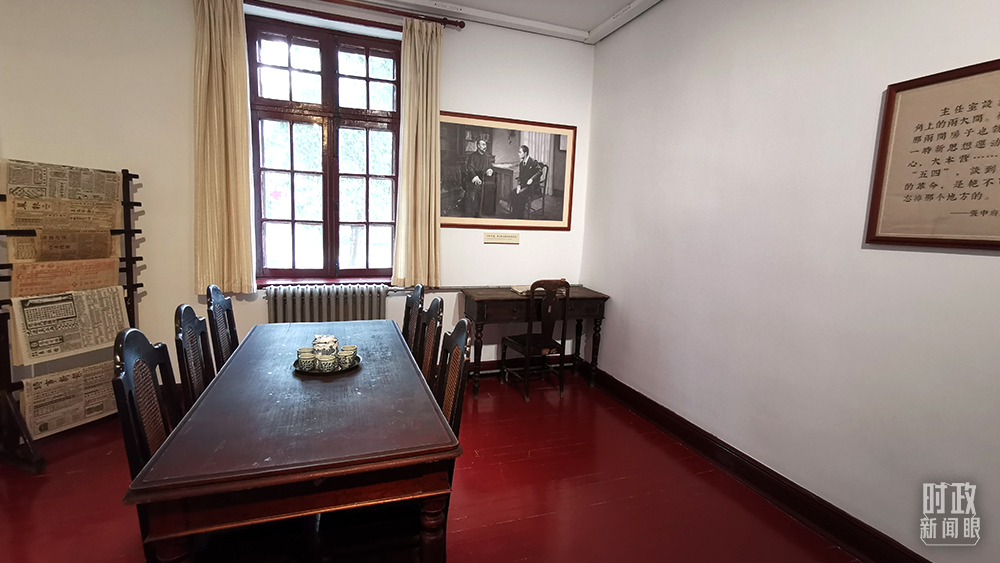 李大钊常在办公室与进步青年共同讨论、研究各种新思潮。1920年还在此会见共产国际代表维经斯基,研究酝酿成立共产党。(总台央视记者李晓周拍摄)