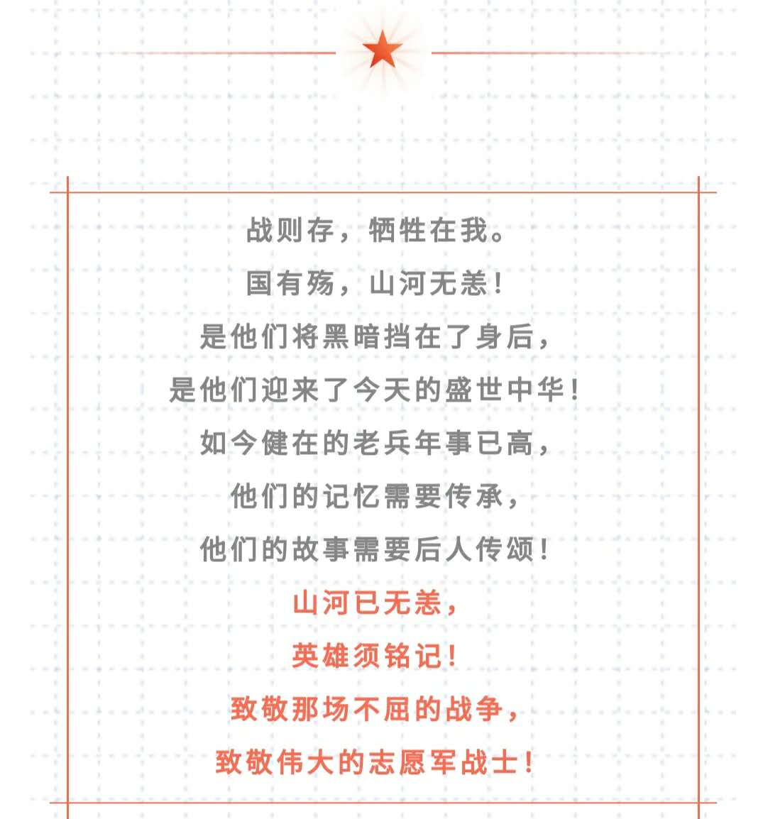 听着“雄赳赳,气昂昂,越过鸭绿江。保和平,为祖国,就是保家乡。中国好儿女,齐心团结紧,抗美援朝打败美帝野心狼”的《中国人民志愿军战歌》,仿佛看到了七十年前十九余万的中国人民志愿军毅然踏上了朝鲜的土地。用钢铁的意志和坚定的信念去对抗“不可战胜”的美军神话,捍卫国家的安全和尊严。