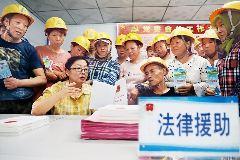 2020年8月26日,河北省唐山市丰润区司法局组织律师走进社区、工地,为群众提供免费法律援助。人民图片 朱大勇/摄