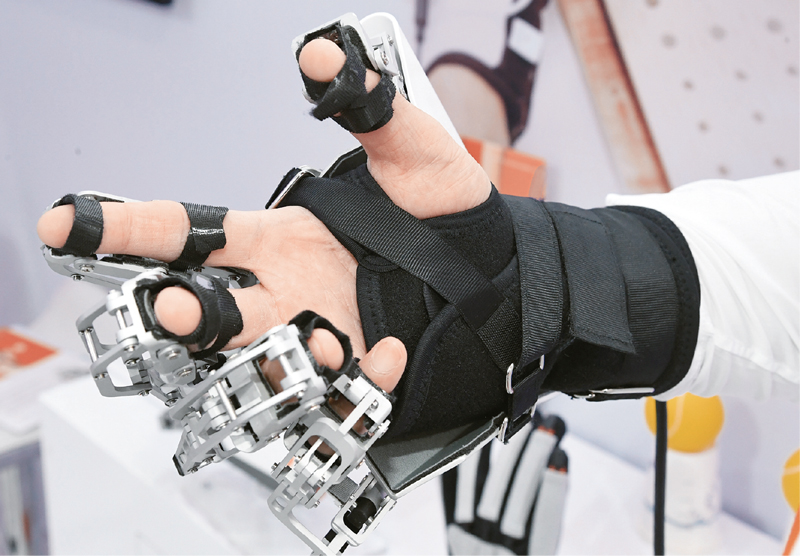 2020年中国国际服务贸易交易会9月4日至9日在北京举行。展会期间,众多新技术新成果亮相展示,领域涵盖人工智能、物联网、智慧家居等各类技术、服务在生活中的应用,让观众体验贴心的服务,感受科技助力美好生活。图为9月7日,工作人员在服贸会服务机器人专题展区展示手功能康复外骨骼机器手。它可用于帮助因神经肌肉骨骼系统受损造成手部运动功能障碍的患者进行康复训练。 新华社记者 任超/摄