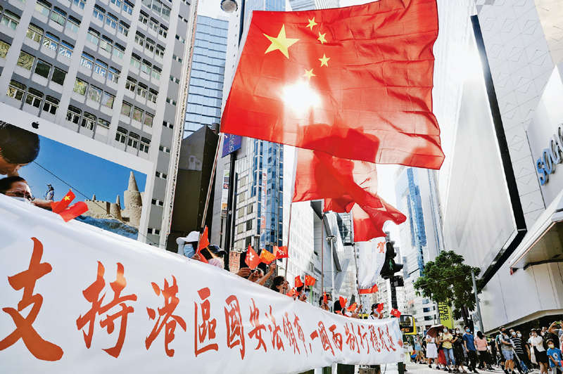 2020年6月30日,十三届全国人大常委会第二十次会议表决通过《中华人民共和国香港特别行政区维护国家安全法》。这部法律对香港维护国家安全制度机制作出了法律化、规范化、明晰化的具体安排,为维护国家安全和香港长治久安、长期繁荣发展,保障香港居民依法享有的权利和自由,保护外国人在香港的合法权益,增强外国投资者对香港的信心,确保“一国两制”事业行稳致远,提供了法律支撑和根本保障。图为6月30日,香港市民在铜锣湾街头支持实施香港国安法。 新华社记者 王申/摄