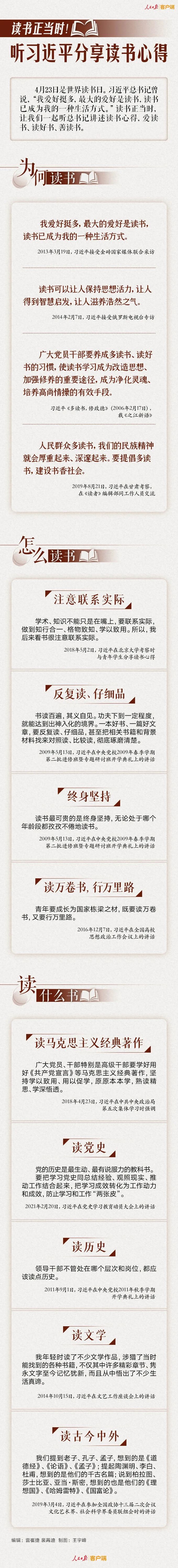 收录于话题今天是世界读书日。据说,世界读书日来源于西班牙加泰罗尼亚地区的一个传说:“美丽的公主被恶龙困于深山,勇士乔治只身战胜恶龙,解救了公主;公主回赠给乔治的礼物是一本书。”从此书成为胆识和力量的象征。在中国古代,读书是中国传统家族最为重视的事情,几乎家家都有“耕读传家”的传统。中国古人都明白“诗书传家远、忠厚继世长”的治家之道。因此,家庭再艰难,有远见的人家都会培养一颗读书种子,作为家庭文化传承的根本。过去,中国的读书人都有以“为往圣继绝学,为万世开太平”的高远之志。古代虽为家天下的帝王统治,但是治理天下的宰相大臣大都是来自民间,可以说,中国古代社会,是皇帝和士大夫共治天下的时代,而治理的理念,则基本秉承儒家的治国思想,虽改朝换代,政治理念基本不变。今天,读书究竟有没有用?在网络舆论场,这个问题每隔一段时间就会成为人们讨论的焦点。 “读书无用论”一度很有市场,从边远山区初中生辍学现象到一线城市大学生就业难,各种“读书无用论”的翻版论调不断出现:“七万硕士送外卖”的假新闻赚足了流量,自嘲为“985废物”和“小镇做题家”的年轻人不在少数;在城市选择“就地躺平”的“蹲族”生活引发一片共鸣;优秀学子从“985”到“996”的人生轨迹充满幻灭感,等等。这一切看似是在质疑读书的意义,实则是人们在表达对就业、生活、乃至未来的焦虑。读书真的无用吗?一起听习近平总书记分享读书心得