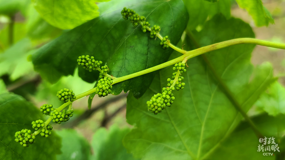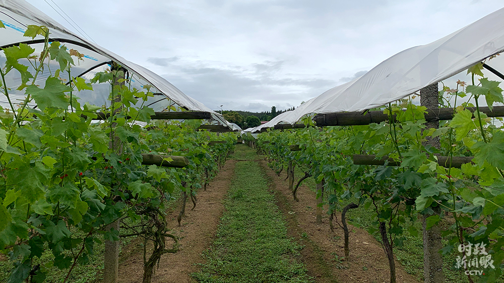 白色塑料膜的棚架下,是村里种植的多品种葡萄。(总台央视记者马超、张晓鹏、赵化拍摄)
