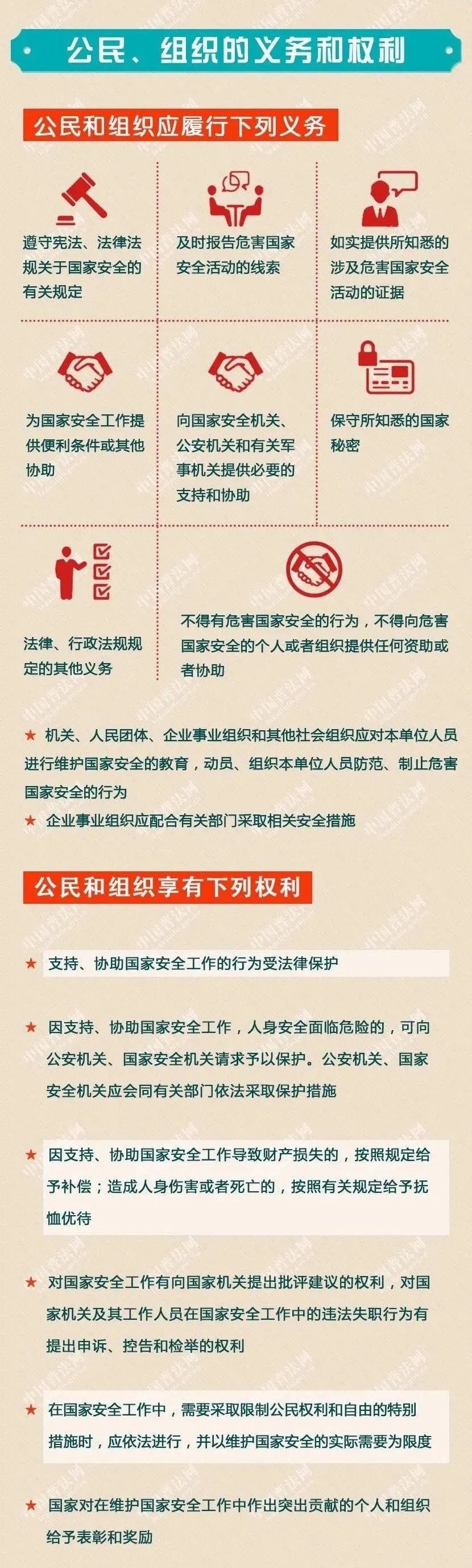 2015年7月1日,全国人大常委会通过的《国家安全法》规定,国家加强国家安全新闻宣传和舆论引导,通过多种形式开展国家安全宣传教育活动,将国家安全教育纳入国民教育体系和公务员教育培训体系,增强全民国家安全意识,并将每年4月15日确定为全民国家安全教育日。